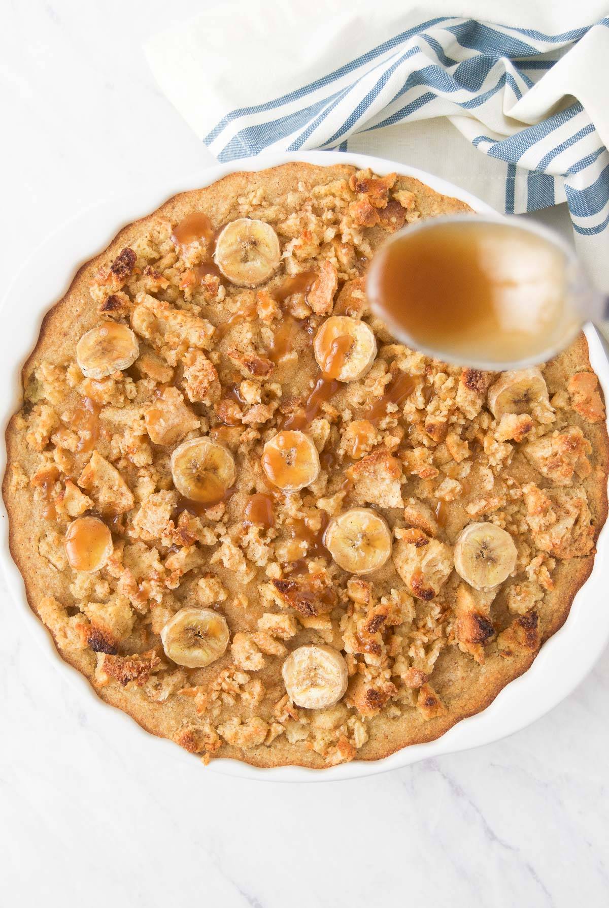 It tastes like banana French toast and bread pudding had a cake baby. There are three parts (fluffy cake, crunchy topping, gooey caramel) but they're all simple to make. And totally worth it.